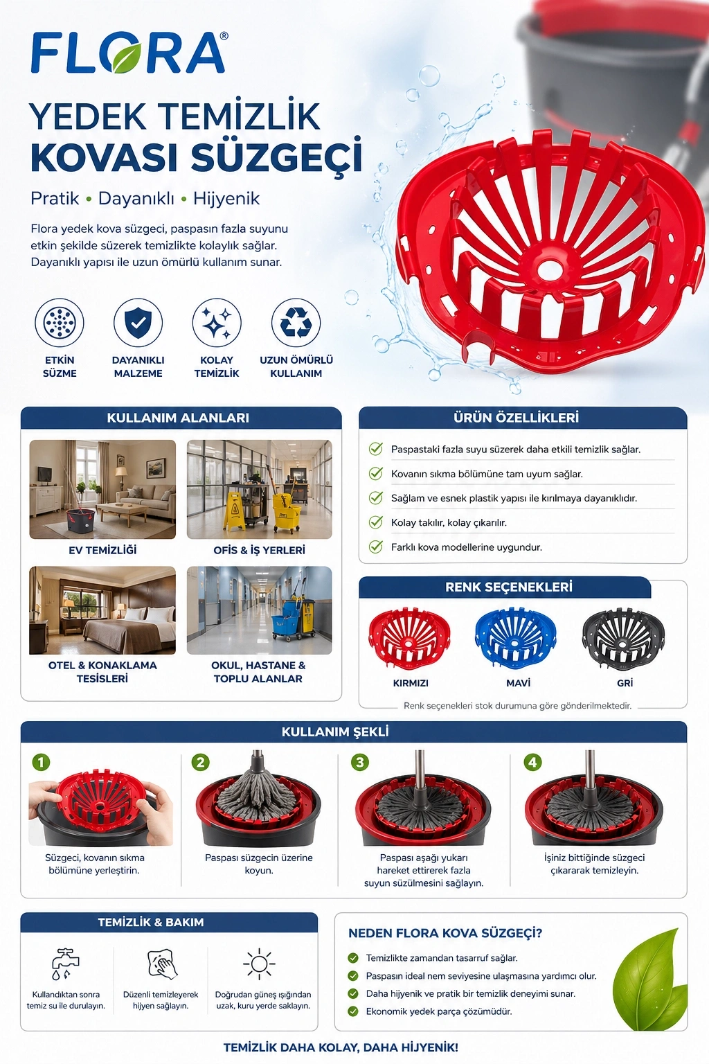 Flora Yedek Temizlik Kovası Süzgeci ürününün öne çıkan özellikleri: