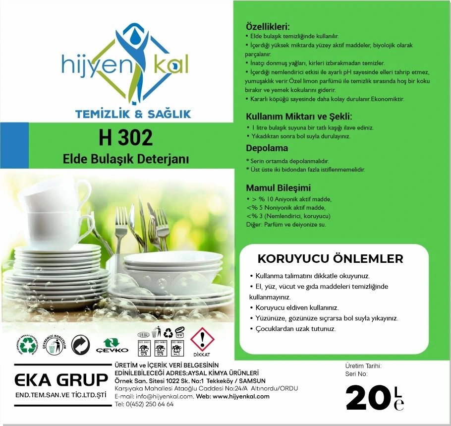Hijyenkal Elde Yıkama Bulaşık Deterjanı H 302 20 Kg
